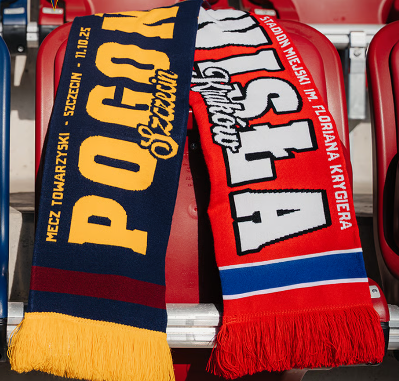 "W duchu sportowej rywalizacji stworzyliśmy dla Was pamiątkowy szalik, który ma być mostem łączącym kibicowskie tradycje z obu miast i pieczęcią na październikowym boju. Historia godna zapamiętania. Dobrej zabawy i udanego meczu!"