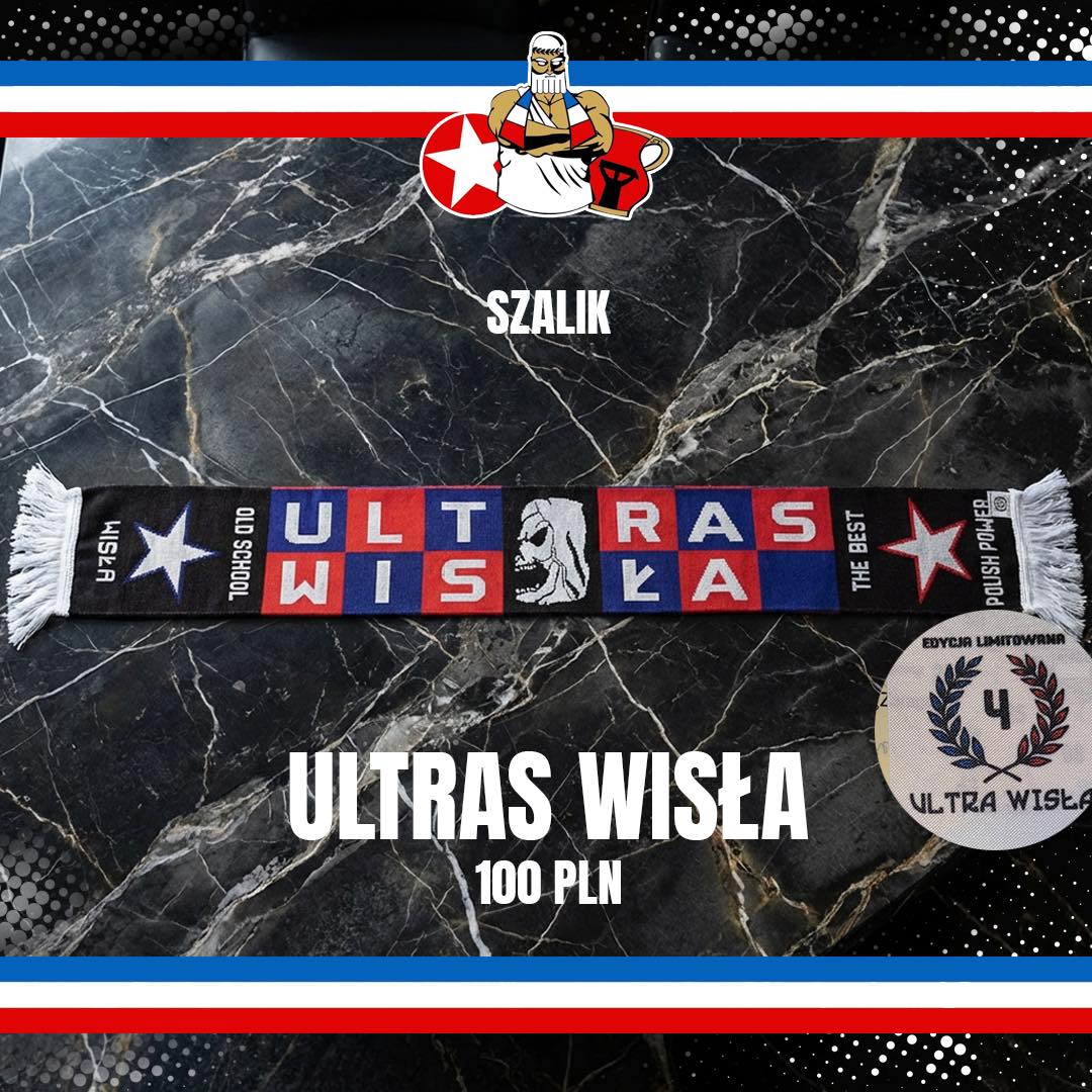 - Szalik na wzór retro flagi ULTRAS WISŁA – powstało go tylko 50 sztuk. Jest metkowany, dzięki czemu każda sztuka zyskuje potwierdzenie limitowanego nakładu. Cena: 100 zł. Do sprzedaży trafią numery 4-50, a numery 1-3 będą licytowane u nas na profilu.
