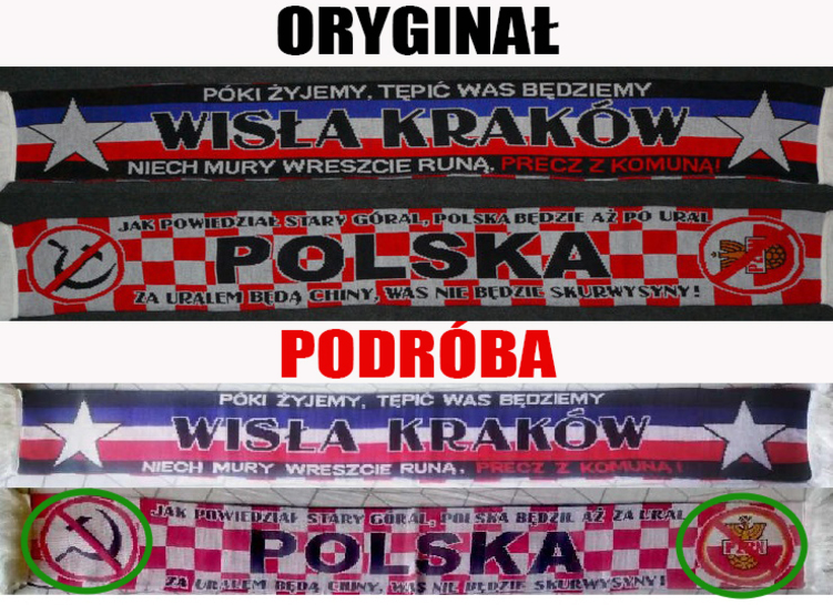 Dział poświęcony wzorom szali, które zostały podrobione przez oszustów dla własnego zysku i nie mają nic wspólnego z prawdziwymi barwami Wisły.